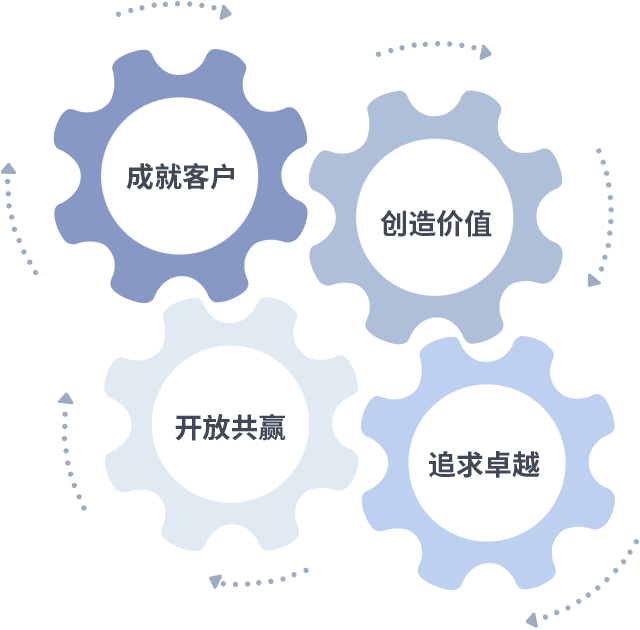 成就客户是一切决策的出发点,创造价值是衡量所有工作的标准,追求卓越是亚游集团做事做人的态度,开放共赢是亚游集团的格局也是最终的结果。价值观的齿轮环环相扣,推动着组织里的每个人不断向前。